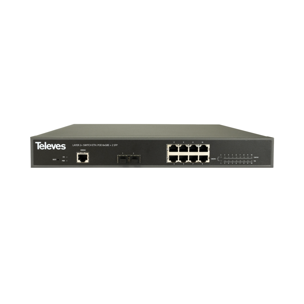 Der Switch verfügt über 8 PoE+ GbE-Ports mit einer Leistung von jeweils bis zu 30W sowie 2 SFPs-Ports.